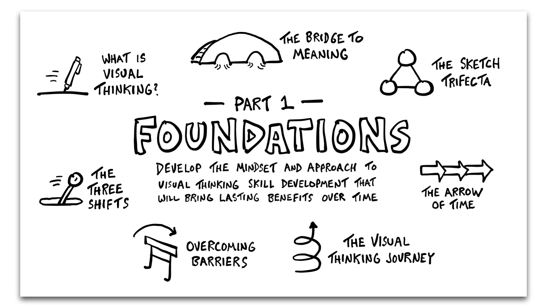 Start with the right mindset and approach. Learn what visual thinking really is, discover the three key shifts that unlock lasting benefits, and overcome common barriers as you develop your personal visual thinking roadmap. Watch the first lesson above.