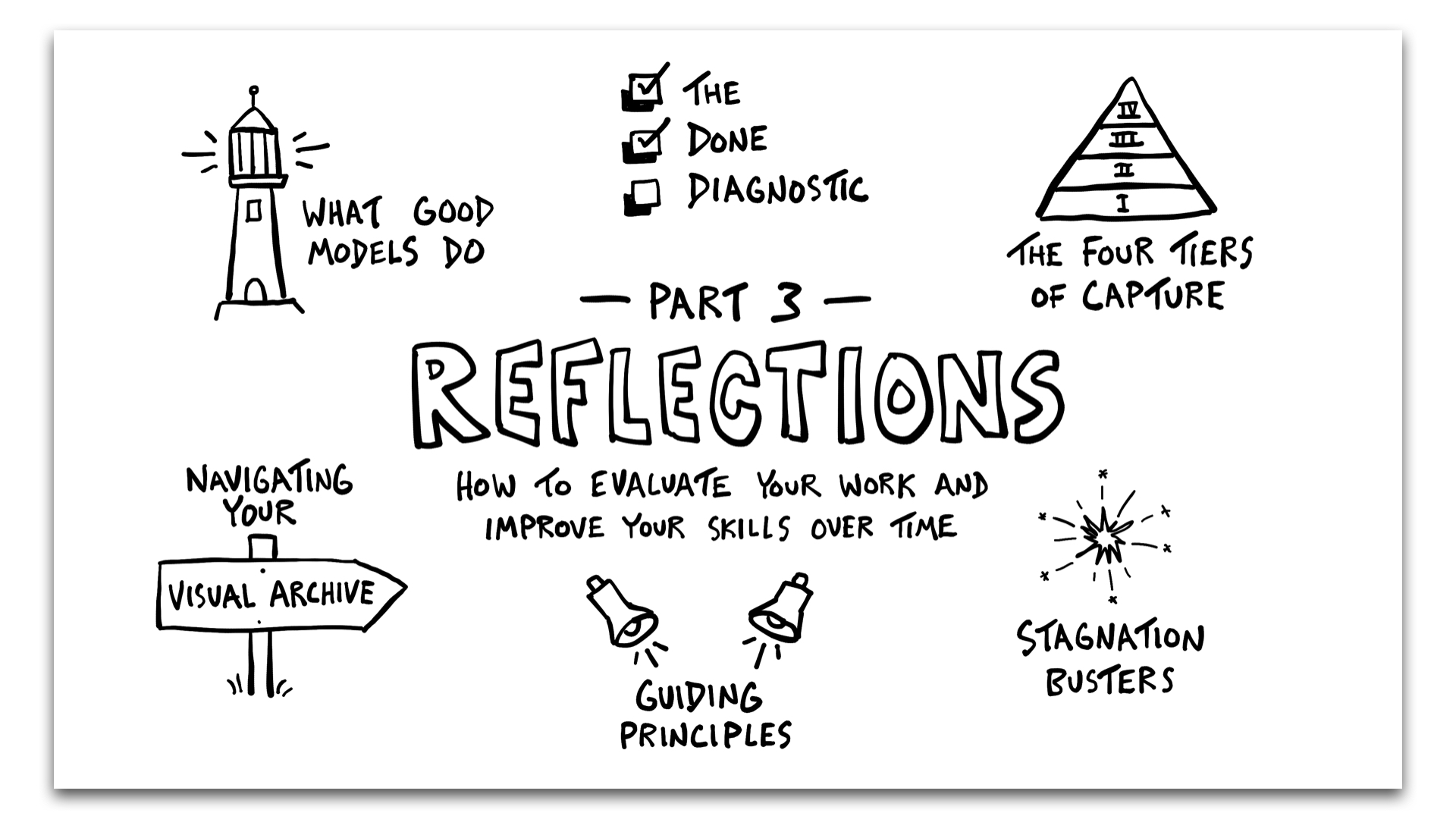 Develop the skills to evaluate and improve your work over time. Learn what makes good models effective, discover guiding principles for visual thinking, and learn how to keep things fresh as you keep growing your skills.