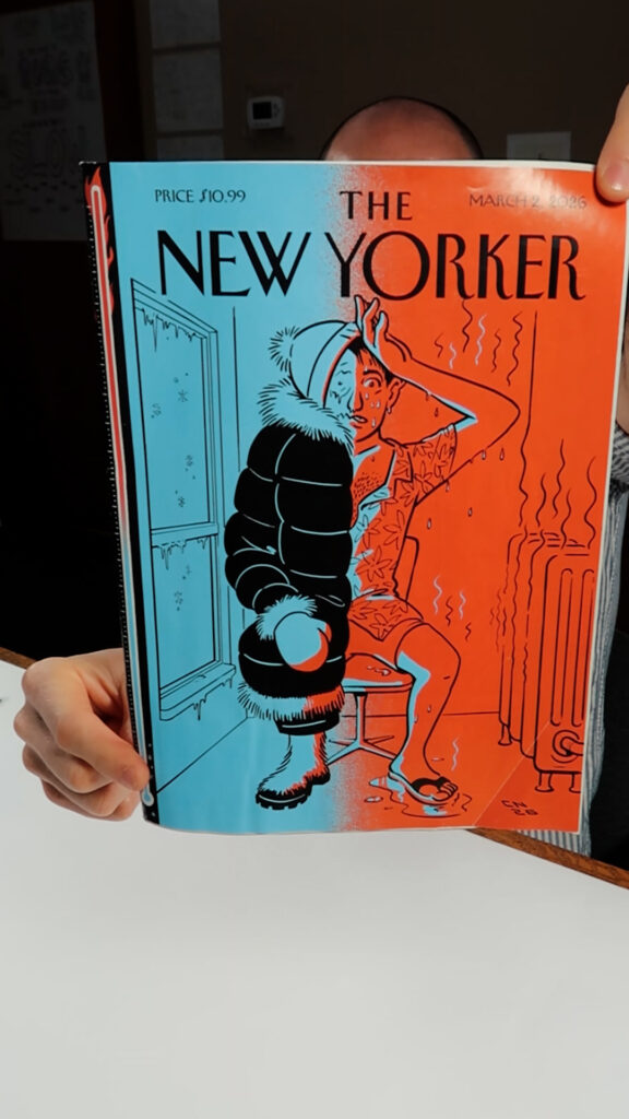 Here’s the cover of the March 2nd, 2026 New Yorker. I think it’s a cool example of a visual thinking technique that you might be able to apply to your own work, even if it’s less illustrative than this is.